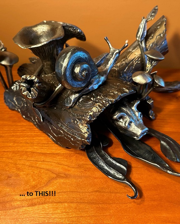 Hello all. I started blacksmithing around 2008 when a neighbor who ended up being like a brother asked me to help him with a project in his forge. Fast forward to 2025 and as I look back on all the different projects I've been involved with, what I realize is that I really like trying to make metal look like nature. Whether it's forging animals for gates, furniture or other artwork, to forging flowers, vines and other plants, to trying to create nature scenes in my pattern welded chef's knives, the pull towards the natural world is always there.